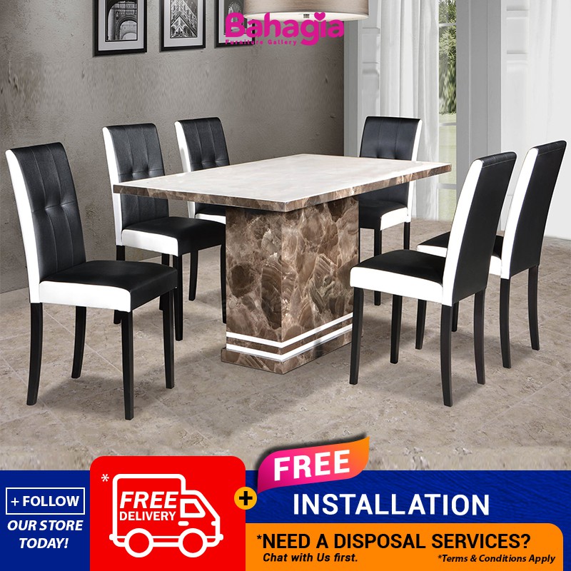 Meja Bahagia Copa Marble Table 1400mm X 800mm Dining Set 1 Table Dining 6 Dining Chair Meja Makan Batu Mamar 1 6 Shopee Malaysia